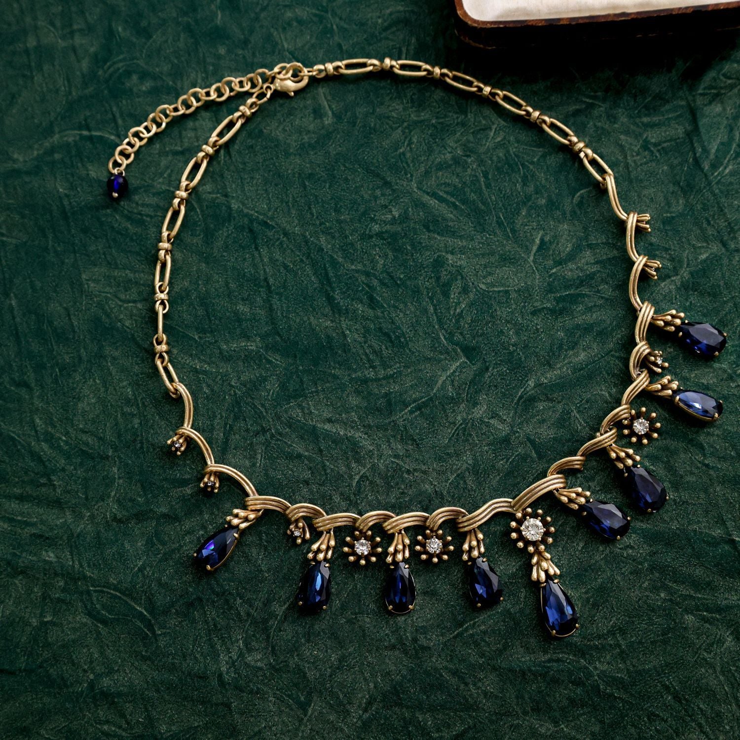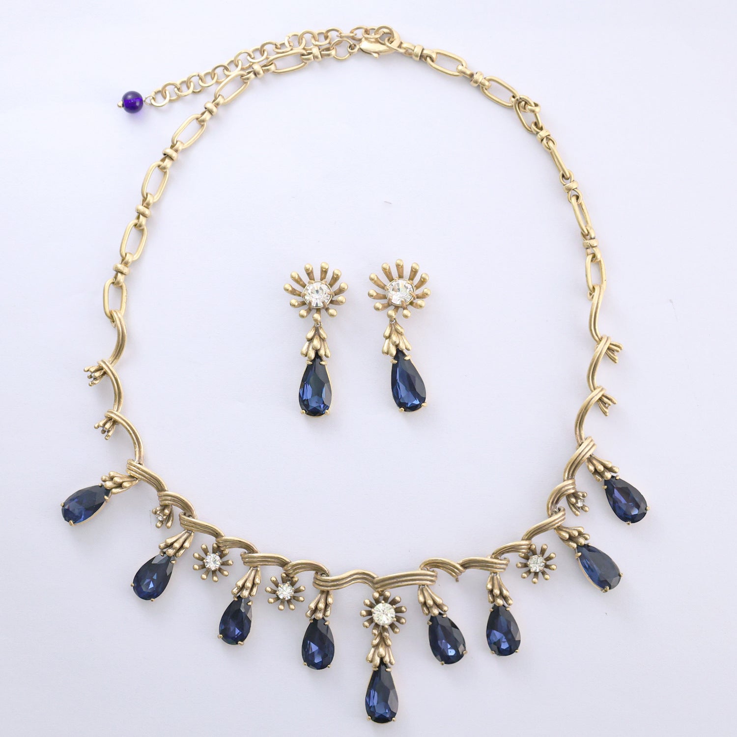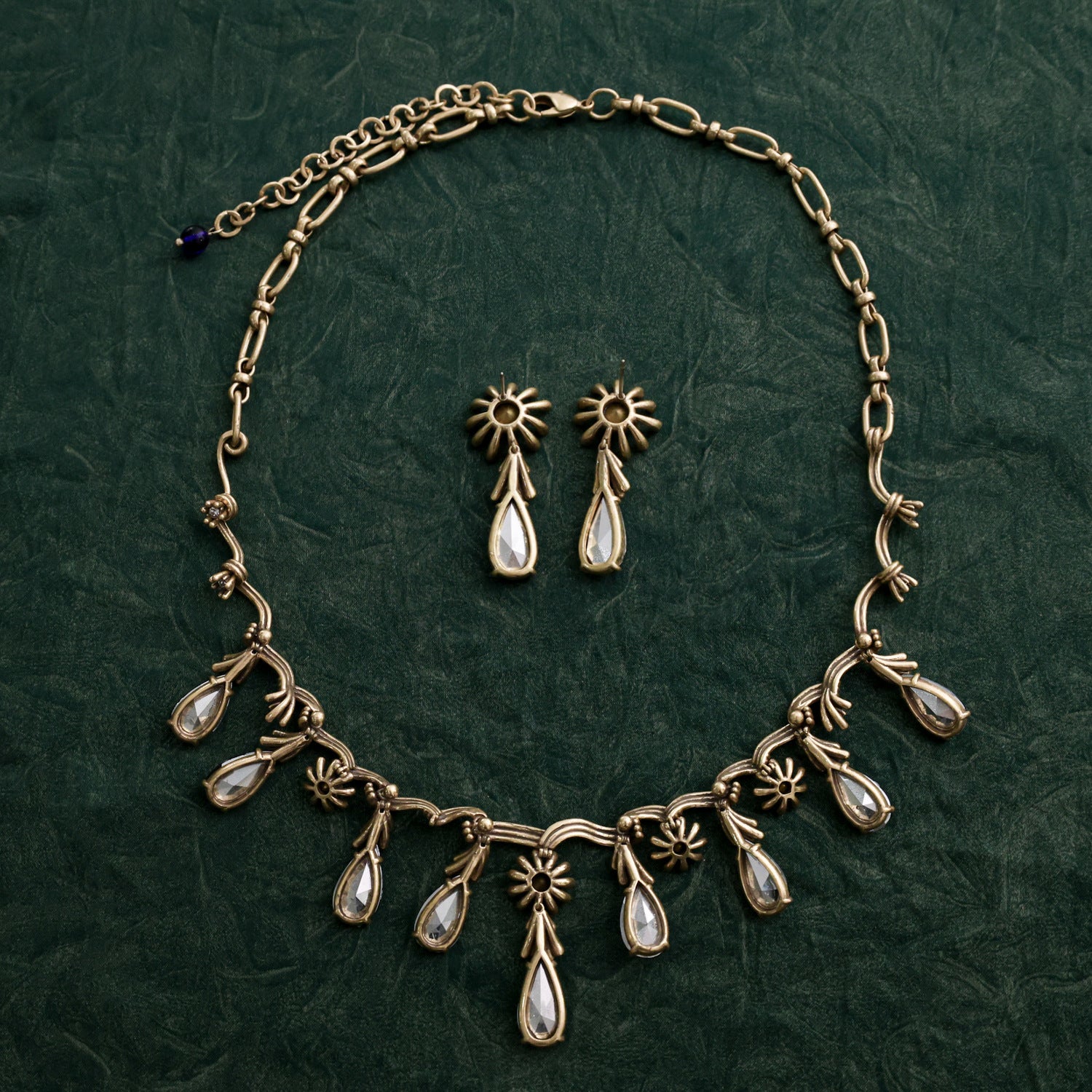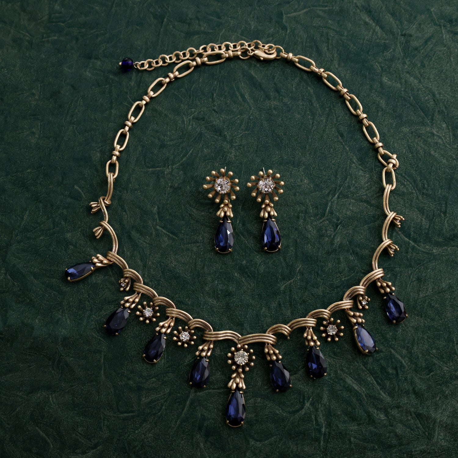 3D Flower Pendant Stud Earrings with Rhinestone Tassels, Vintage Artisan Luxe Women's Necklace Jewelry Set