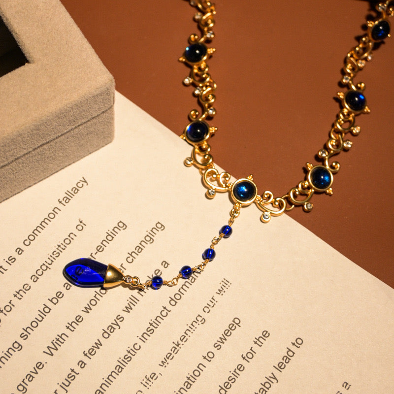 Royal blue dangle vintage necklace & earrings set
